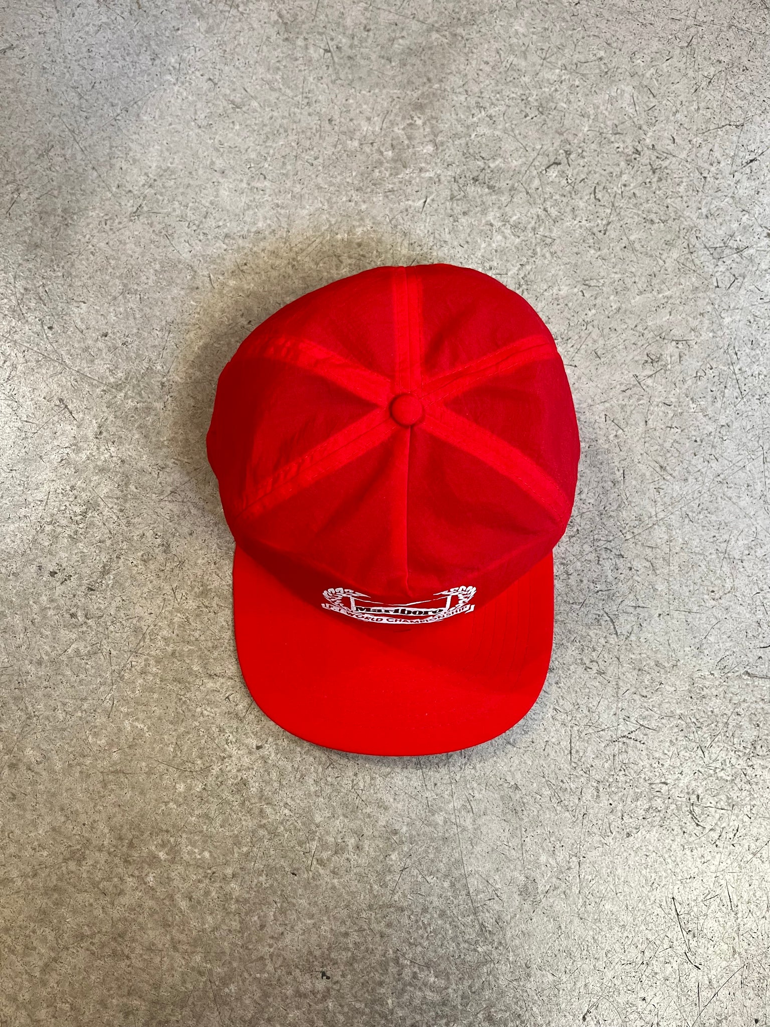 Casquette Marlboro vintage datant des années 90. Matière synthétique et forme assez haute typique des années 80/90. Forme style américaine très tendance en ce moment.