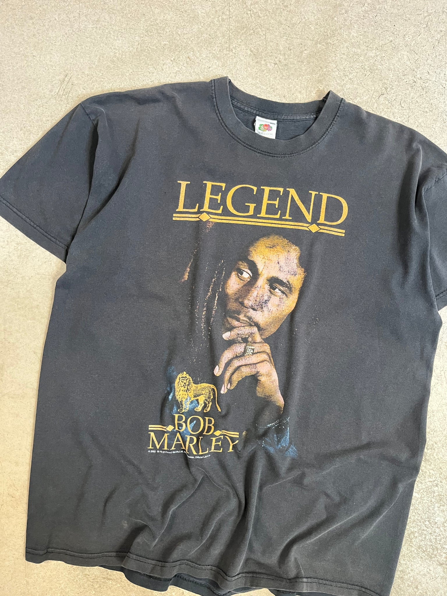 Tee-shirt Bob Marley datant de 2002. Très belle couleur passée par les années d'utilisation et de lavage. Sous licence "Fruit of the loom".