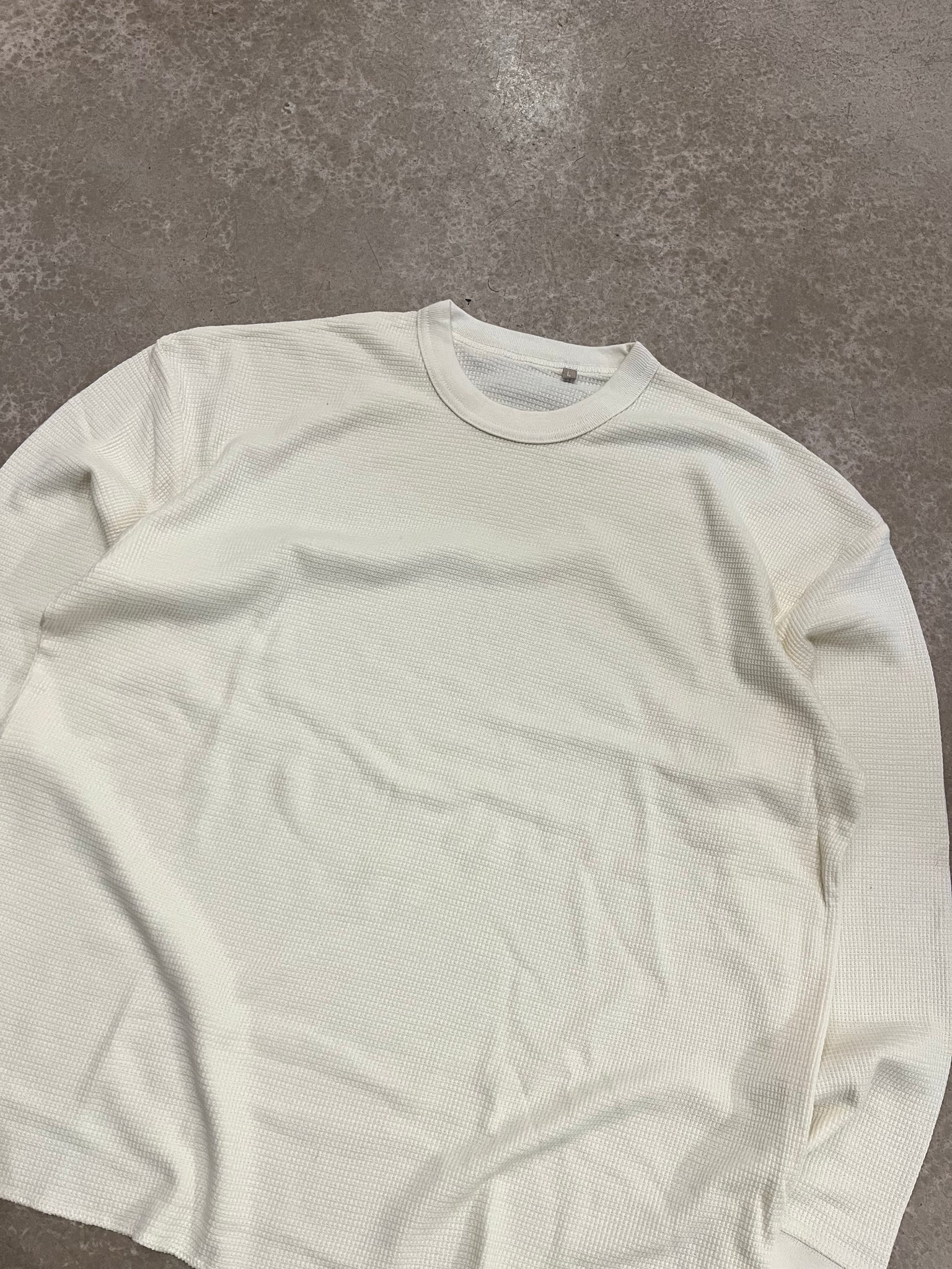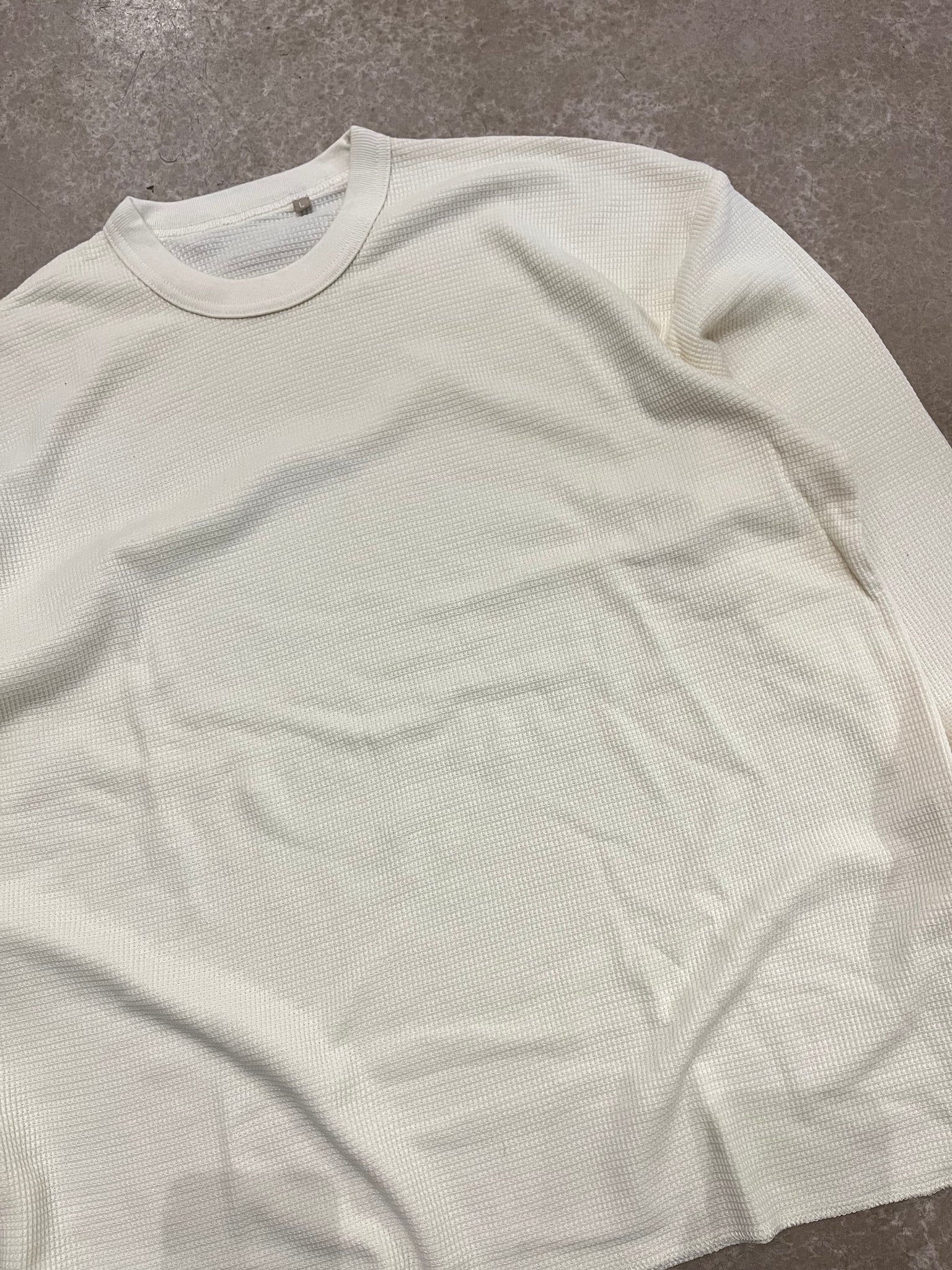 Tee-shirt Thermal en matière gaufrée de couleur crème. Les tailles vont du S au XL.