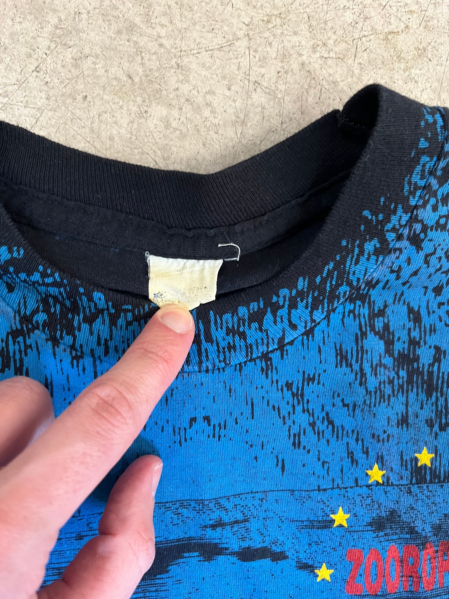 Tee-shirt vintage "all over print" du groupe U2 à l'occasion de la tournée Zooropa en 1993.